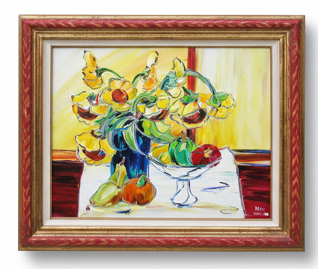Sculpté fleurettes or vieux blanc (moulure refendue)