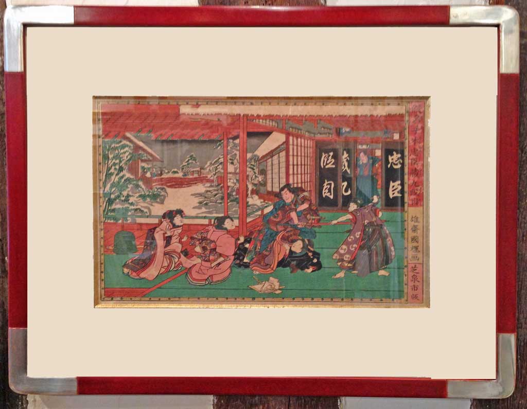 Rouge chine angles or blanc (estampe japonaise)
