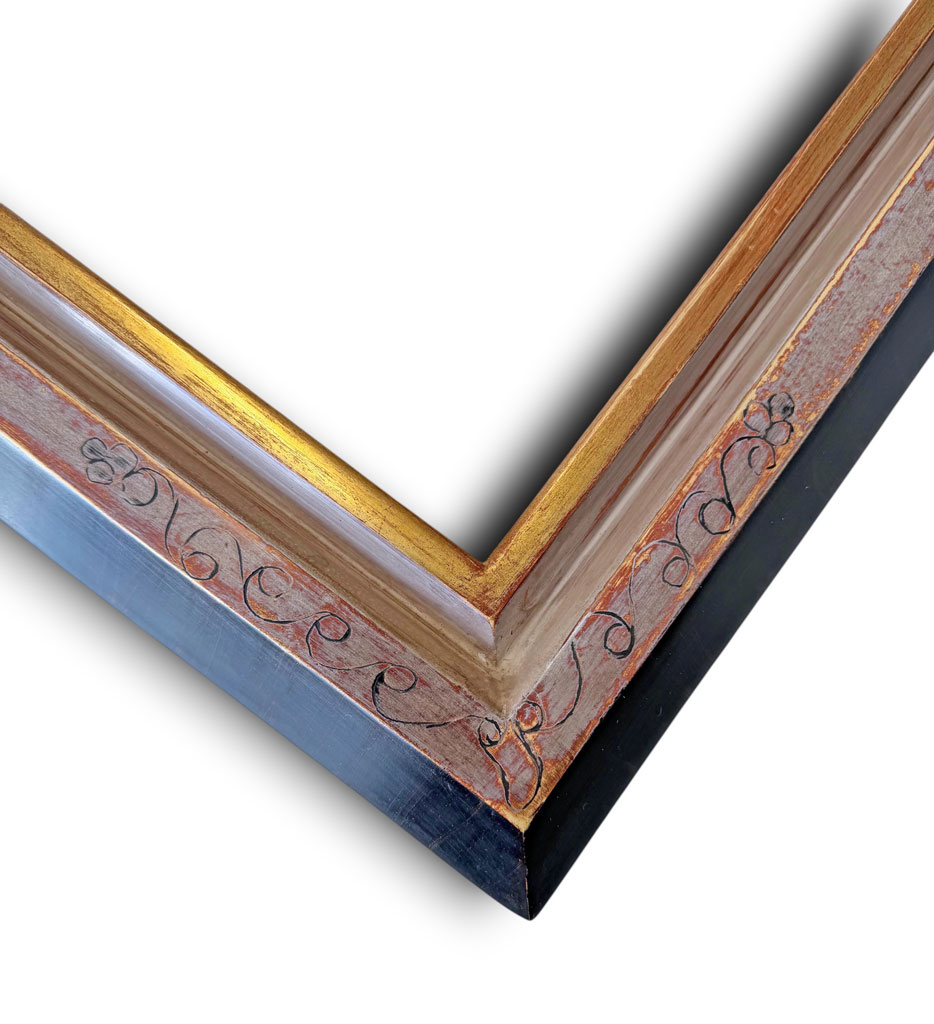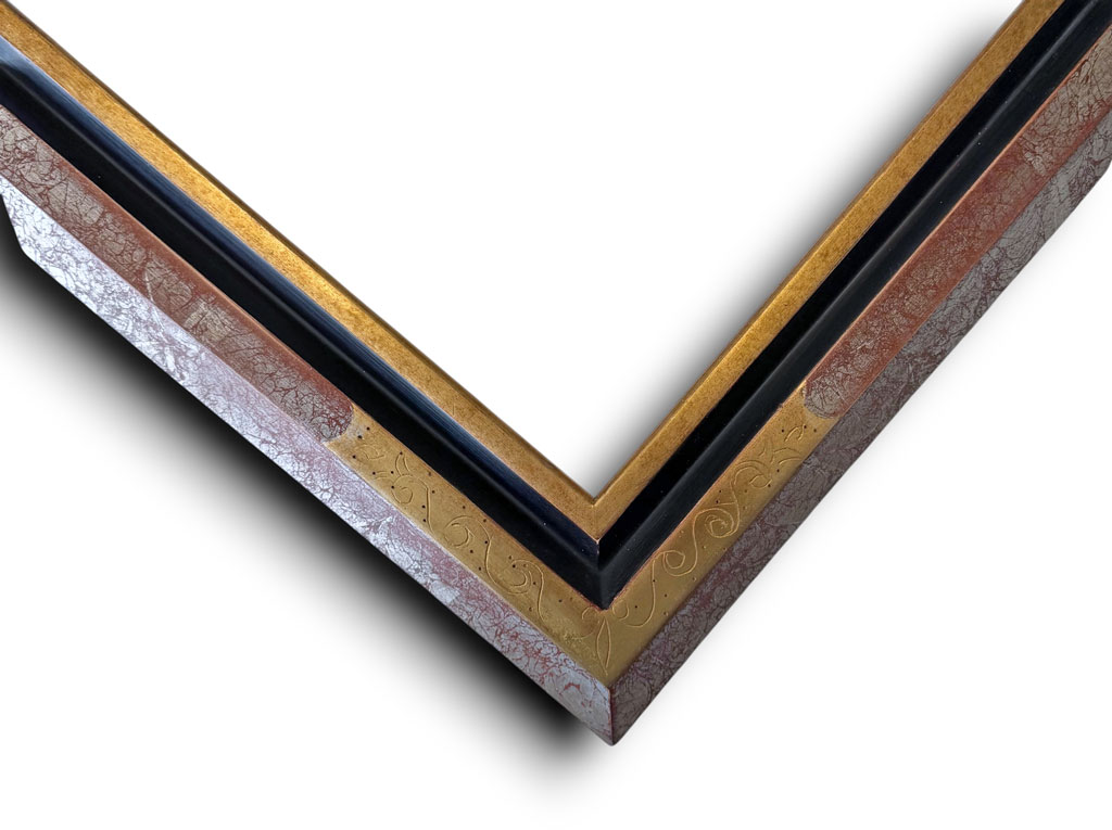 Angles gravés or extérieur dédale gorge noire filet or
