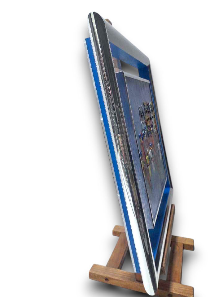 Argent vif rehausse bleu vif plexi transparent cache-clous argent vif (Charles Cambier)