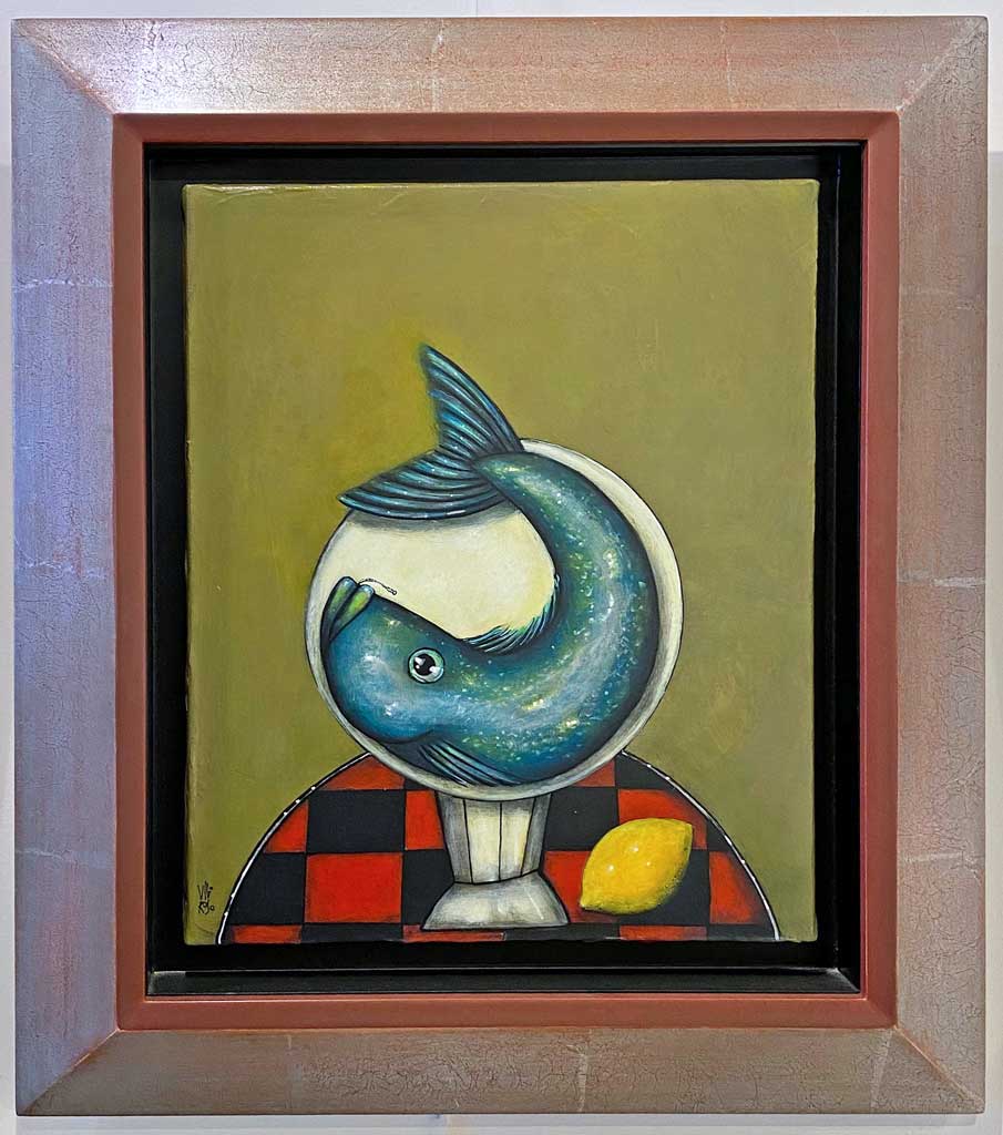 Sisyphe sur assiette noire filet argent